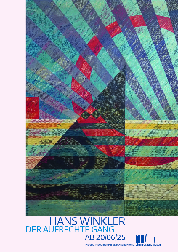 In den nächsten Wochen und Monaten werden auf allen Etagen der Stadtbücherei Weimar Werke des Weimarer Malers Hans Winkler zu sehen sein, dessen Ausstellung wir am Freitag, 20. Juni 2025 um 19.30 Uhr eröffnen.