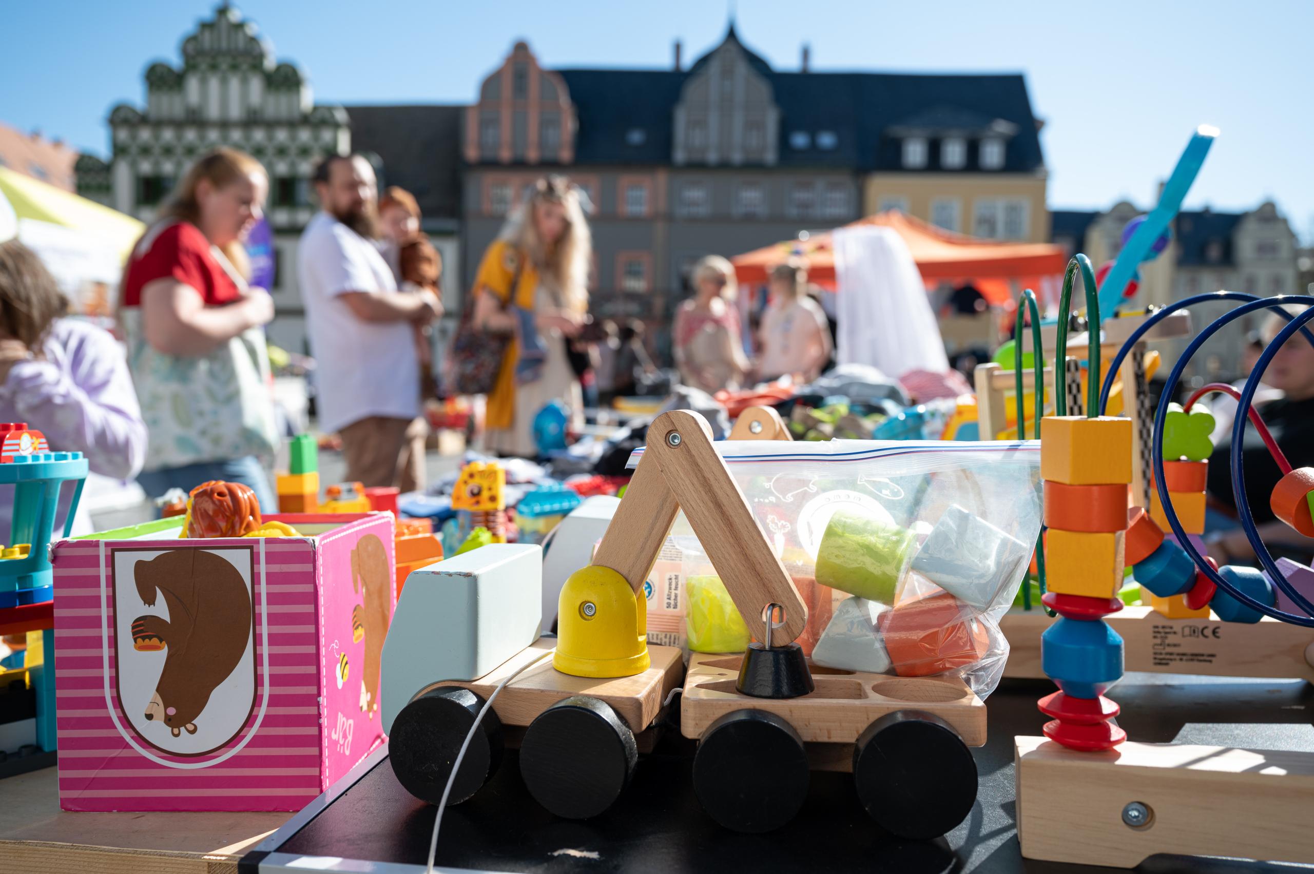 Möchten Sie mitmachen beim Kindersachen-Flohmarkt? Anmeldungen für einen kostenlosen Stand bitte bis zum 6. Oktober 2025 per E-Mail an willkommensbaeumchen@stadtweimar.de.