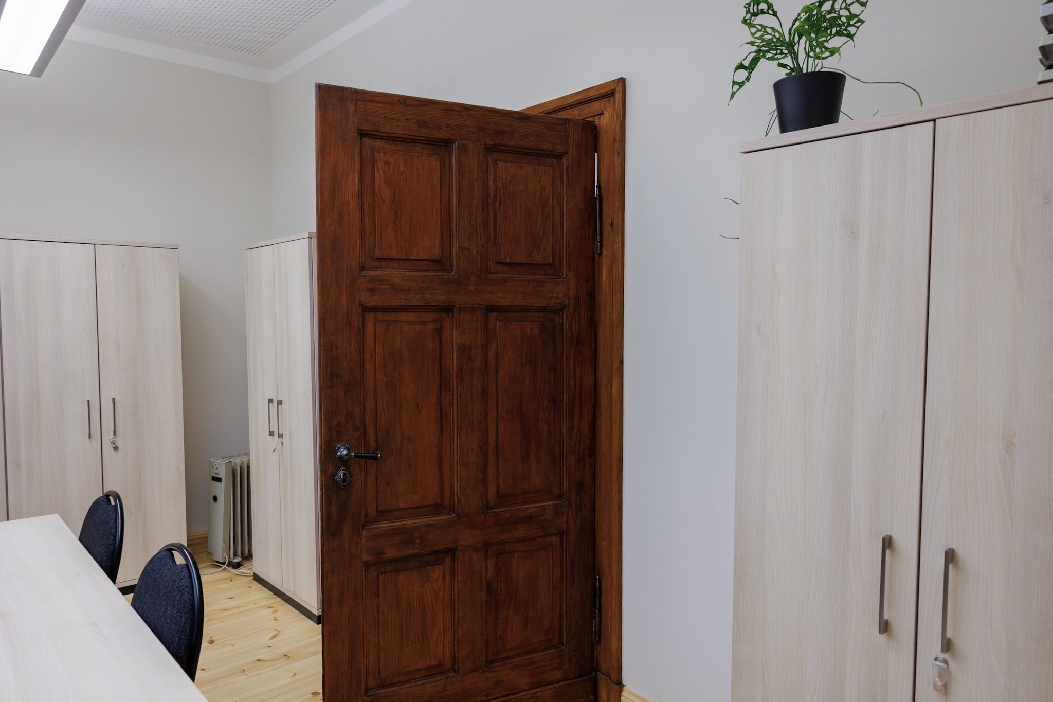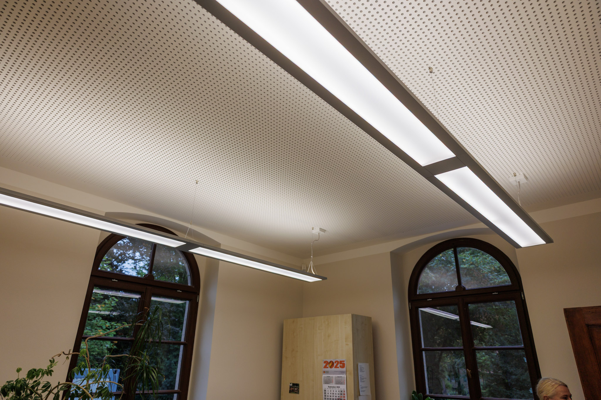 In der Zwischenzeit haben Planungsteam und Handwerker mit viel Fingerspitzengefühl die Qualität der historischen Räume wieder zum Leben erweckt. Holzfußböden, aufgearbeitete historische Türen, neue Akustikdecken, LED-Ausleuchtung und neue sanitäre Einrichtungen schaffen einen Wohlfühlort für Besucher und Mitarbeiter.