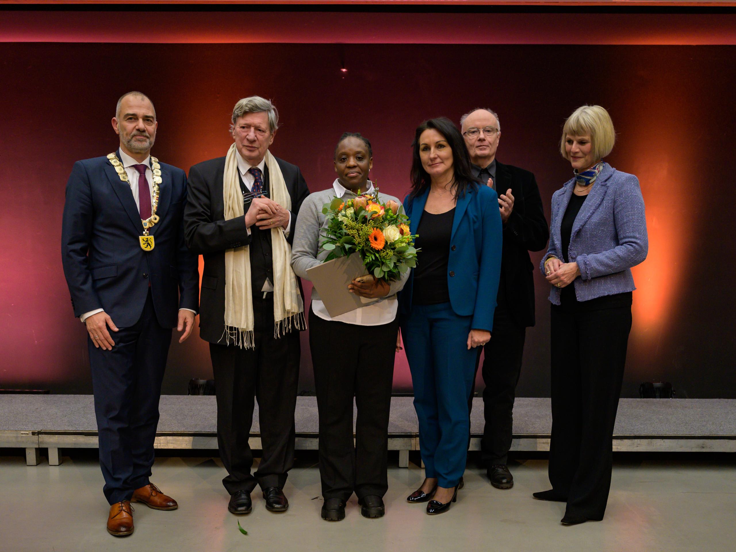 „Mut ist mehr als der Einsatz einer Einzelnen - Mut ist ein Kollektiv. Karen Mukwasi zeigt uns, wie eine Stimme viele werden kann. Sie steht auf gegen Ungerechtigkeit und patriarchale Gewalt, gibt anderen Kraft und erinnert uns daran: Niemand, der sich für das Gute einsetzt, ist allein. Ihr Engagement ist ein Zeichen dafür, dass Veränderung möglich ist wenn Menschen für Menschenrechte und eine gerechtere Welt zusammenstehen“, unterstrich Oberbürgermeister Peter Kleine.