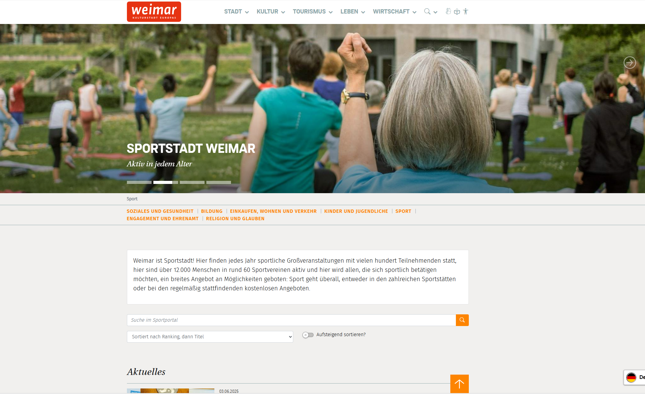 Der überarbeitete Sportbereich der städtischen Website bietet nun unter sport.weimar.de eine zentrale Anlaufstelle für sportinteressierte Bürgerinnen und Bürger.