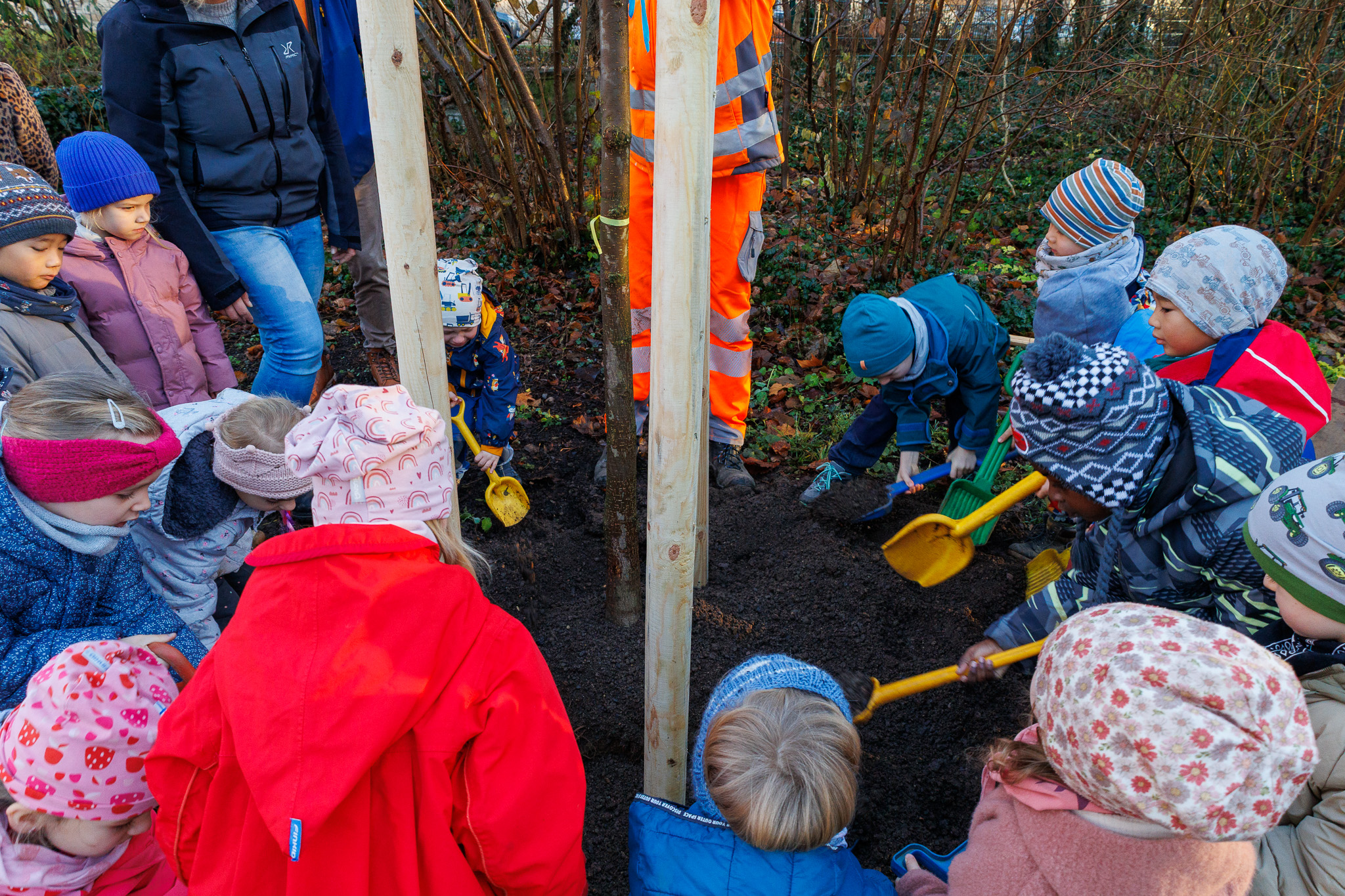 Im Weimarhallenpark ist am 11. Dezember 2025 ein neuer Willkommensbaum gesetzt worden. Die Wahl fiel diesmal auf eine Flatterulme (Ulmus laevis), deren Pflanzung durch den Kommunalservice Weimar erfolgte. Unterstützung erhielten die Mitarbeitenden dabei von Kindern der Kita Hufeland, die mit Begeisterung beim Auffüllen des Pflanzlochs mithalfen und den jungen Baum an seinem neuen Platz herzlich begrüßten.