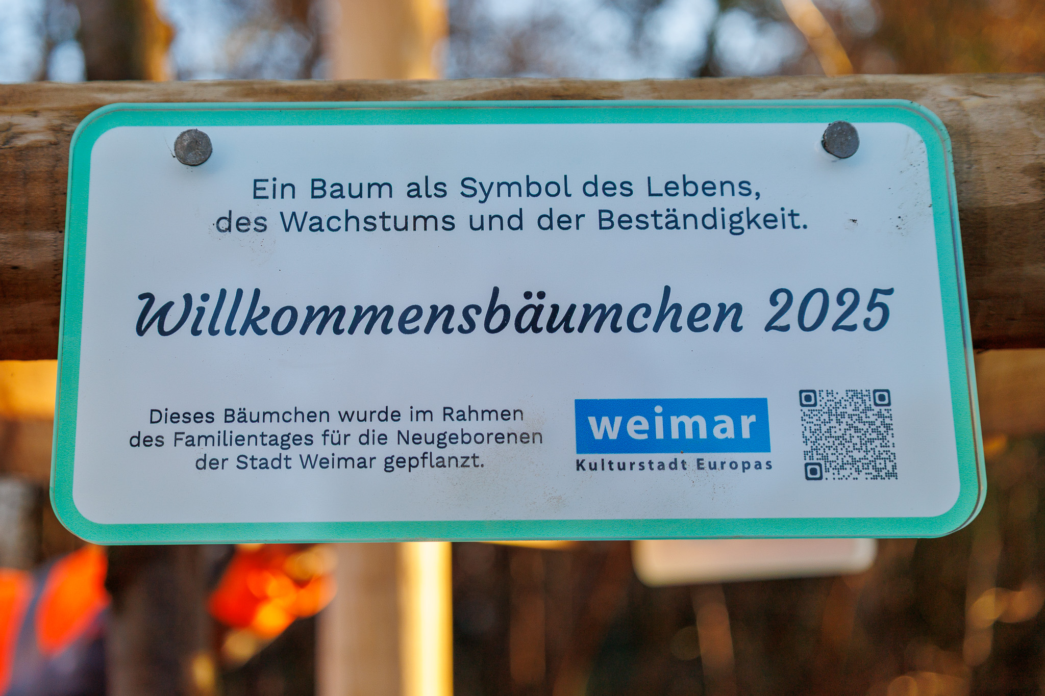 Die neu gepflanzte Ulme ist Teil des städtischen Projekts „Willkommensbäumchen“. Es schenkt Weimarer Eltern zur Geburt ihres Kindes ein lebendiges Symbol für Neubeginn, Wachstum und Zusammenhalt. Die Bäumchen werden jährlich zu den Weimarer Familientagen ausgegeben. Familien können sie im eigenen Garten pflanzen oder der Stadt für öffentliche Grünanlagen überlassen. Gespendete Bäumchen finden ihren Platz auf Spielplätzen, an Kindertagesstätten oder auf Schulhöfen. Zusätzlich wird jedes Jahr ein gemeinsamer Willkommensbaum für alle Neugeborenen des Jahrgangs gesetzt.
