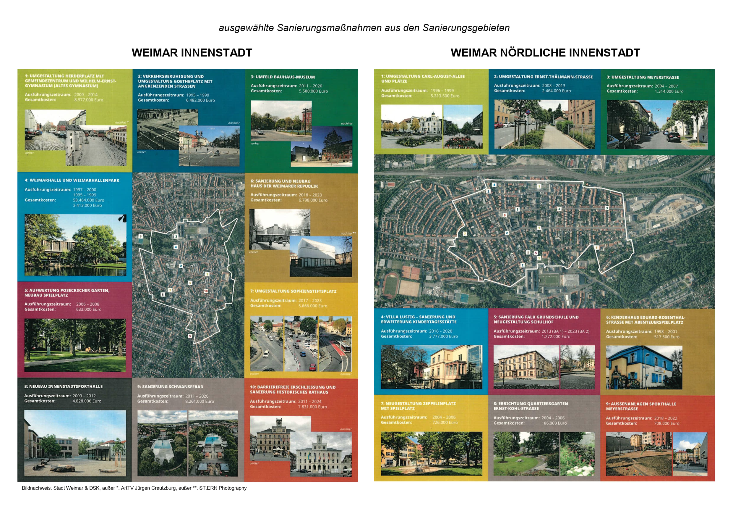Der Durchführungszeitraum der förmlichen Sanierungsverfahren in den beiden Sanierungsgebieten „Weimar Innenstadt“ und „Weimar Nördliche Innenstadt“ endet nach heutigem Kenntnisstand voraussichtlich am 31.12.2030.