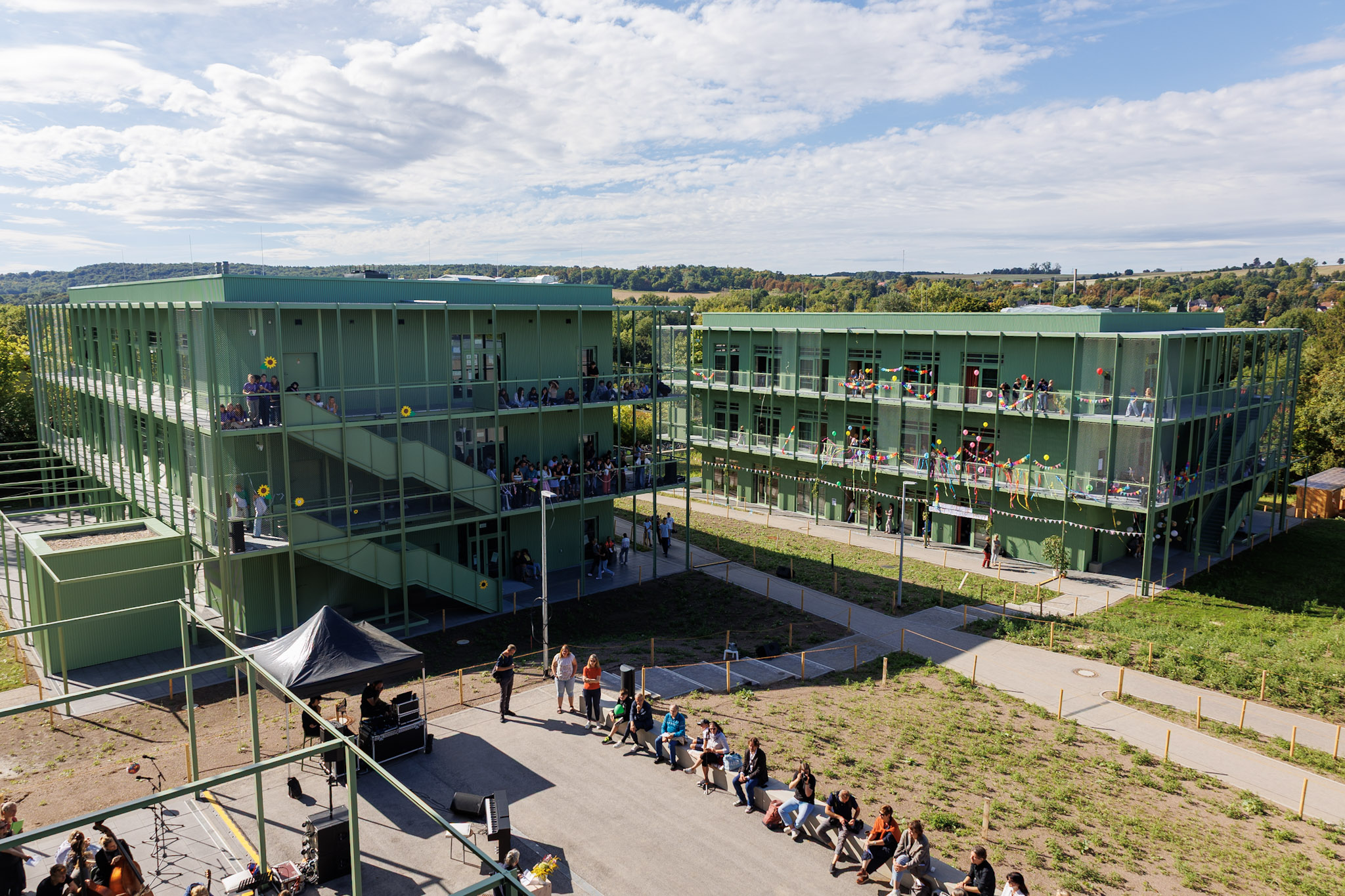 Mit Beginn des neuen Schuljahres hat die Stadt Weimar ihr größtes Bauvorhaben der vergangenen Jahre erfolgreich abgeschlossen: den Neubau des Schulcampus der Staatlichen Gemeinschaftsschule Jenaplan am Standort Am Hartwege. Drei moderne Lernhäuser, ein saniertes Gemeinschaftshaus mit Sporthalle sowie großzügige Freianlagen bilden nun einen Campus, der beispielgebend für zukunftsgerichteten Schulbau ist.