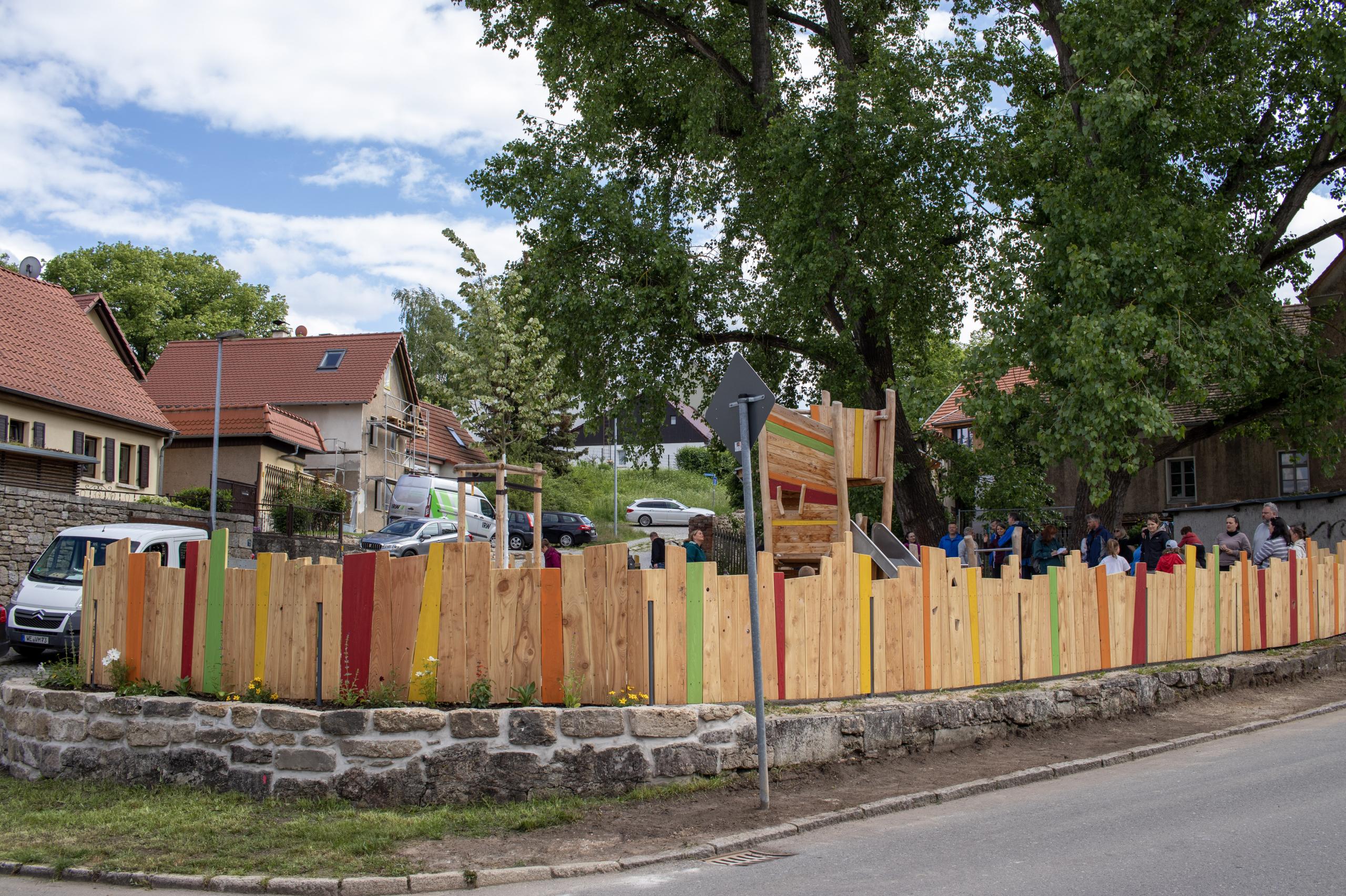 Der barrierefreundliche Zugang ermöglicht es Eltern mit Kinderwagen sowie Personen mit Mobilitätshilfen, den Spielplatz bequem zu erreichen.