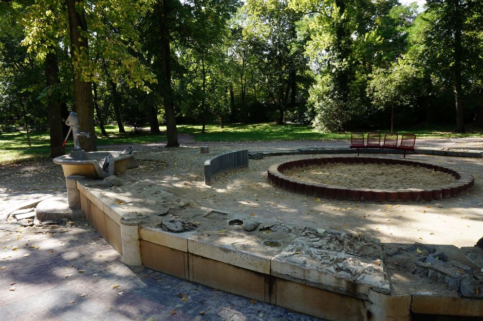 Von Frühling bis Herbst kann dieser Spielplatz als Wasserspielplatz genutzt werden. Es gibt eine Fließstrecke mit verschiedenen Elementen. In der Mitte befindet sich ein Sandkasten. Zusätzlich gibt es eine kleine Rutsche und eine "Kugelkalotte" zum skaten und BMX-fahren.