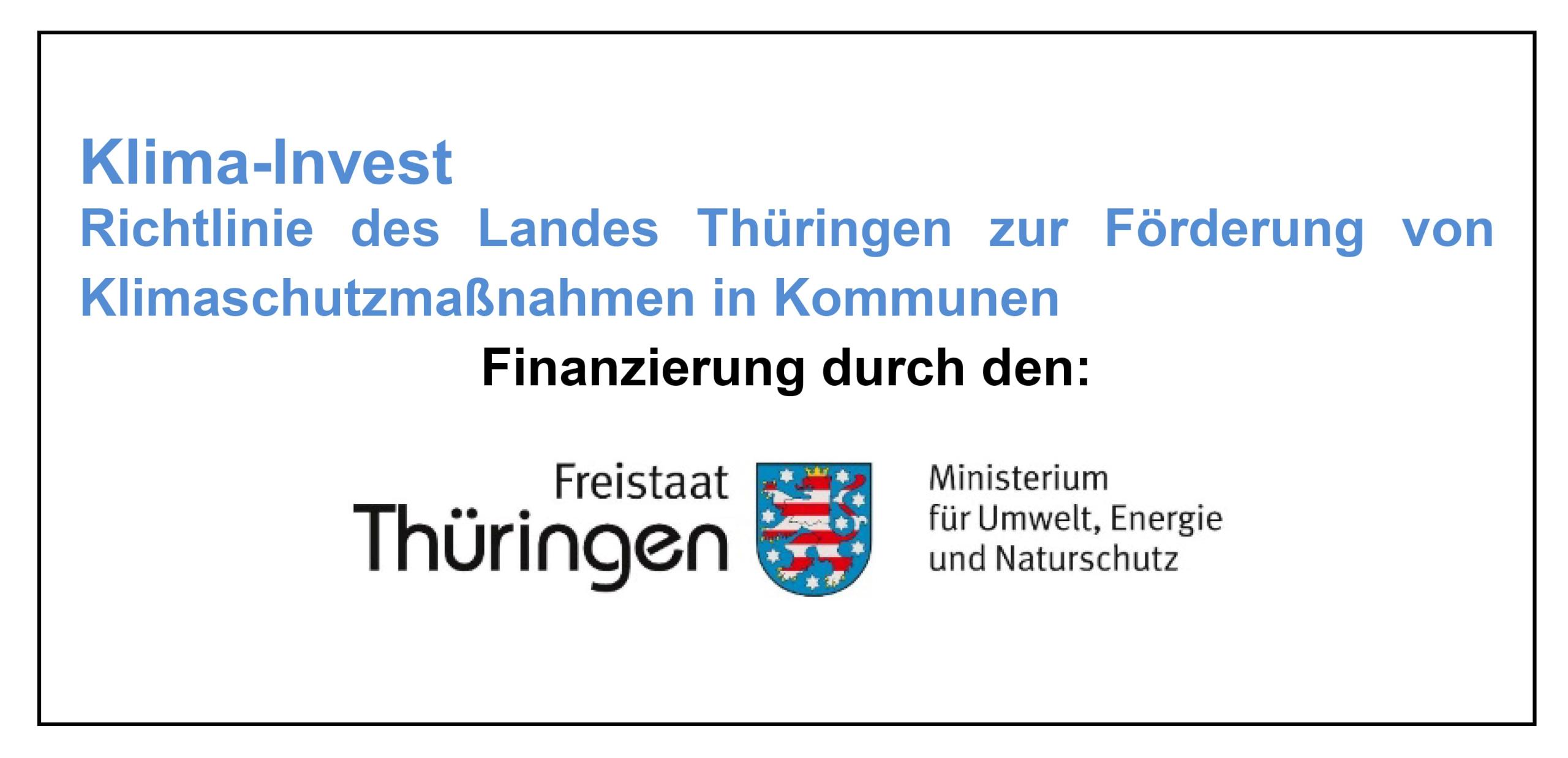 Die Maßnahme wurde zu 60 % gefördert durch das Thüringer Ministerium für Umwelt, Energie und Naturschutz aus dem Programm "Klima Invest"
