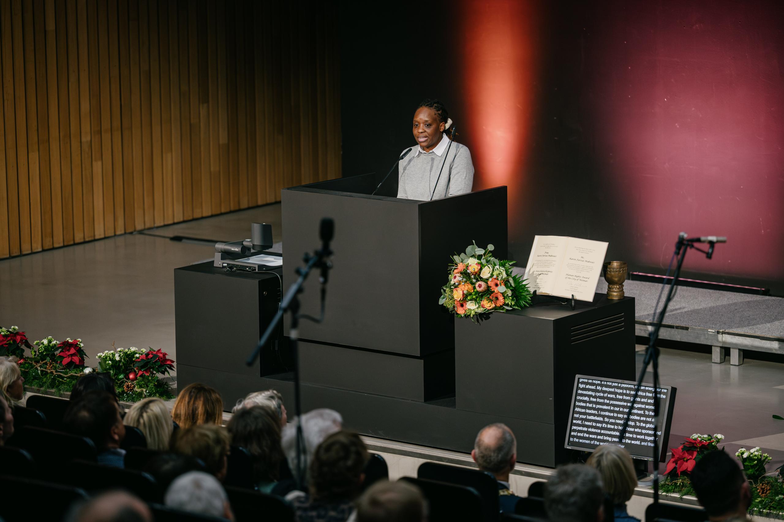 „I am honoured to receive this award. It just shows me that the work I am doing [...] matters. I dedicate this award to every Zimbabwean woman fighting for her freedom and that of other Zimbabwean women. I am grateful to the City of Weimar and the Hamburg Foundation for politically persecuted Persons for supporting my journey.“