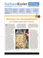 Der Rathauskurier ist das Amtsblatt der Stadt Weimar und erscheint alle vier Wochen. Hier finden Sie den aktuellen Rathauskurier sowie alle digital verfügbaren Rathauskuriere der letzten Jahre zum Nachlesen und Herunterladen.