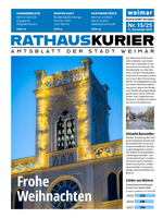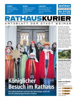 Der Rathauskurier ist das Amtsblatt der Stadt Weimar und erscheint alle vier Wochen. Hier finden Sie den aktuellen Rathauskurier sowie alle digital verfügbaren Rathauskuriere der letzten Jahre zum Nachlesen und Herunterladen.