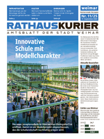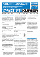 Der Rathauskurier ist das Amtsblatt der Stadt Weimar und erscheint alle vier Wochen. Hier finden Sie den aktuellen Rathauskurier sowie alle digital verfügbaren Rathauskuriere der letzten Jahre zum Nachlesen und Herunterladen.