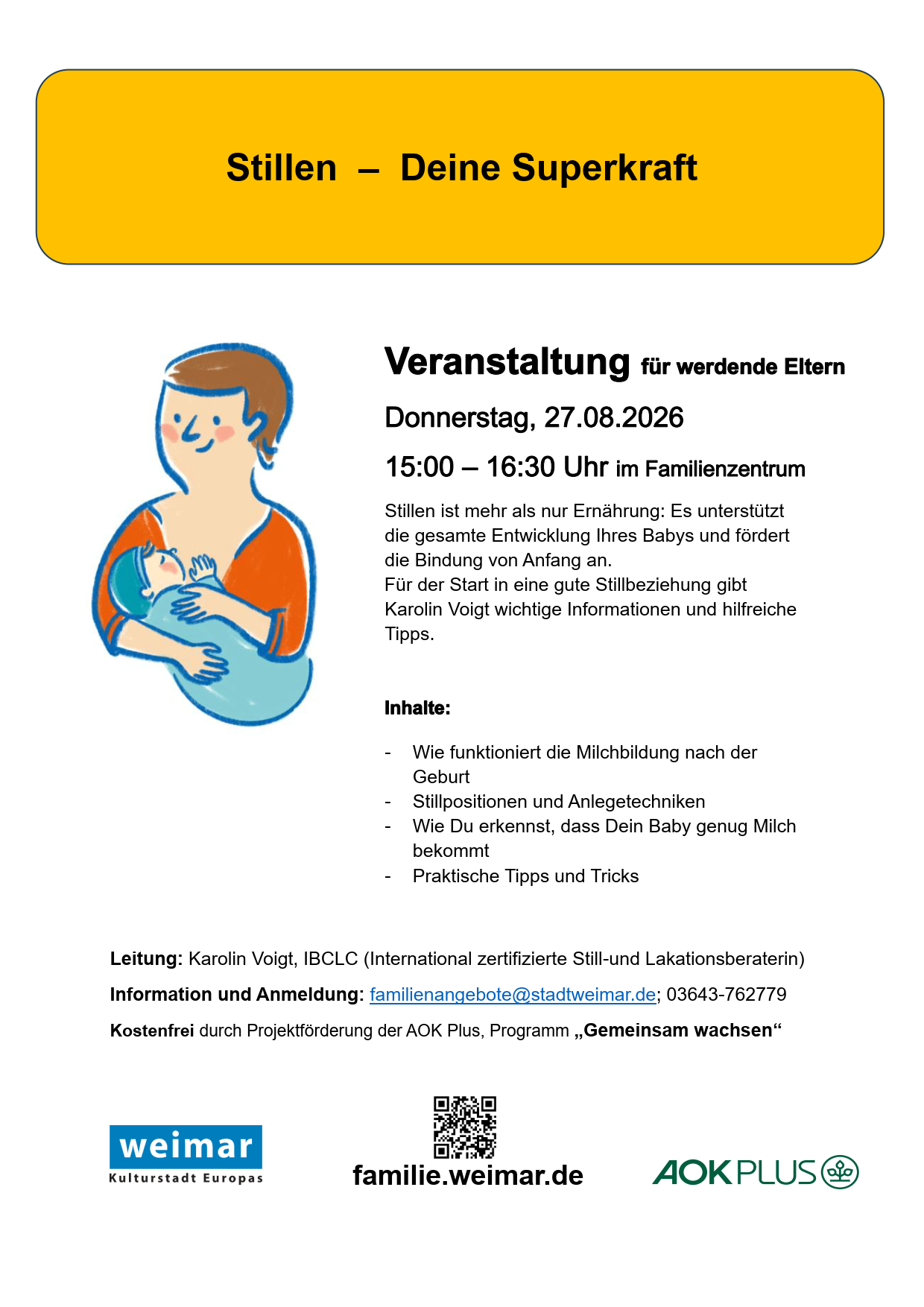Information und Anmeldung: familienangebote@stadtweimar.de; 03643-762779