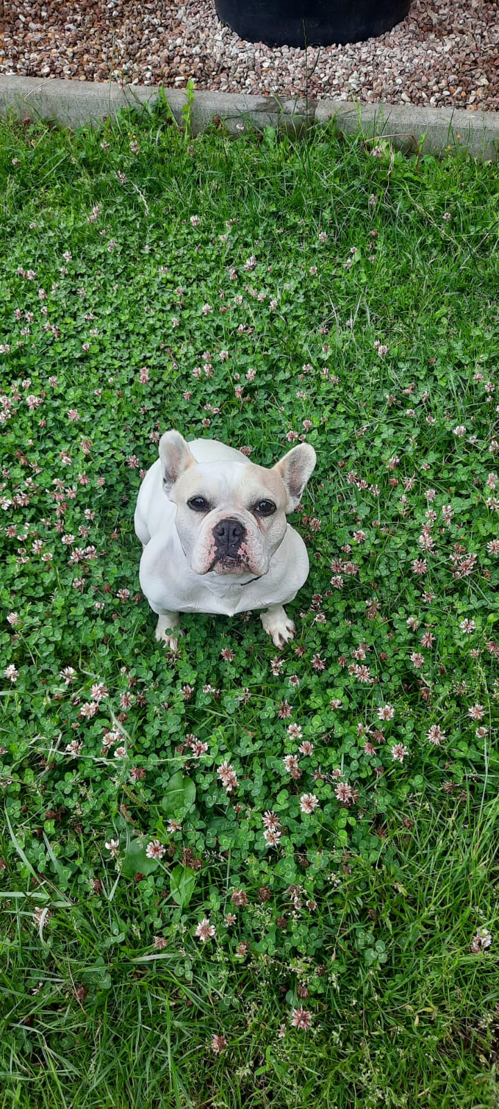 Unsere Amy ist eine etwa 8 Jahre alte Französische Bulldogge, die trotz ihres schwierigen Starts ins Leben voller Lebensfreude steckt. Sie zeigt sich als sehr menschenbezogen, verschmust und freundlich – auch Kinder dürfen gern zu ihrer neuen Familie gehören.