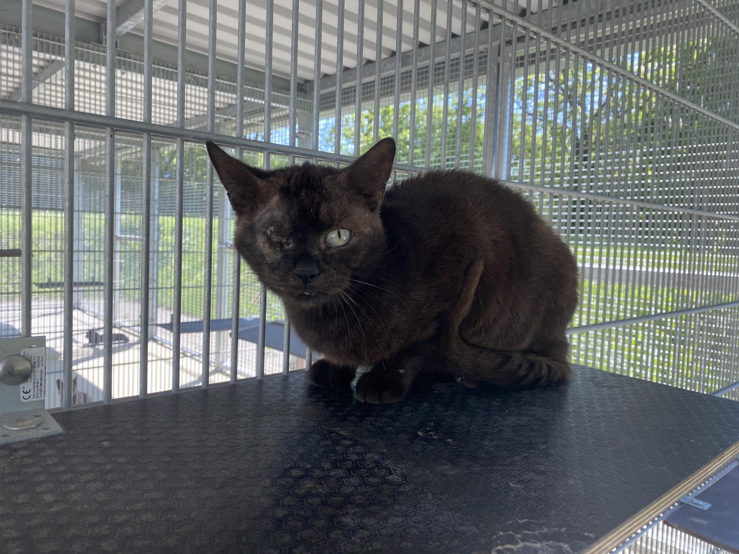 Aufgrund eines schweren Hornhautgeschwüres wurde ihr rechtes Auge entfernt, dies bereitet ihr allerdings keinerlei Probleme.